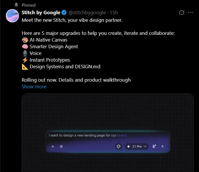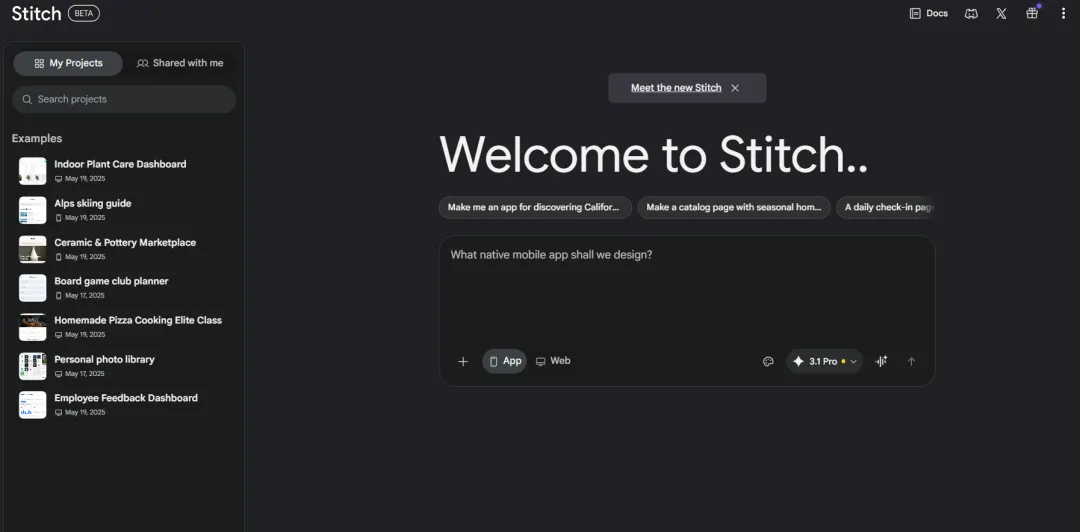 工具叫 Stitch ,谷歌把它定义为你的「氛围设计伙伴」。听起来像是某种下午茶品牌,但实际上,它可能是 这一年里对设计行业冲击最大的一次更新 。