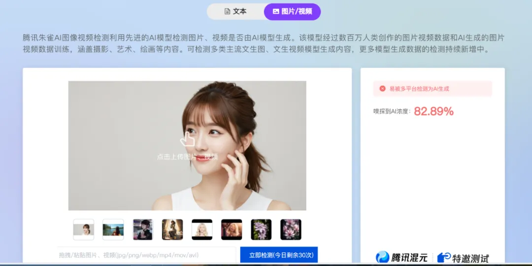 朱雀AI检测助手是一款免费的在线AI检测工具,支持文本、图片和视频检测。