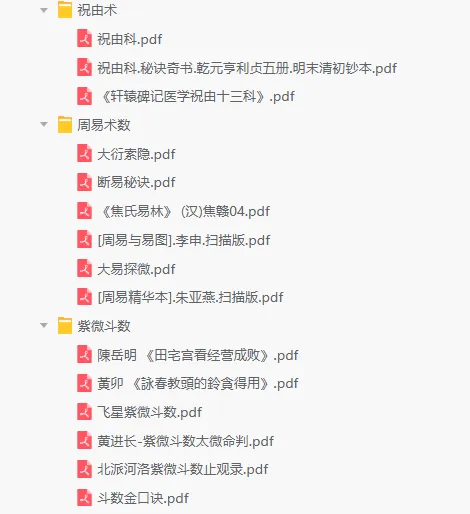 包含祝由术、周易术数、紫微斗数等多个领域的经典著作,如《田宅宫看经营成败》、《詠春教頭的鈴貪得用》等。此外,还有《飞星紫微斗数》、《斗数金口诀》、《玄空飞星卷一学理篇》等专业书籍。