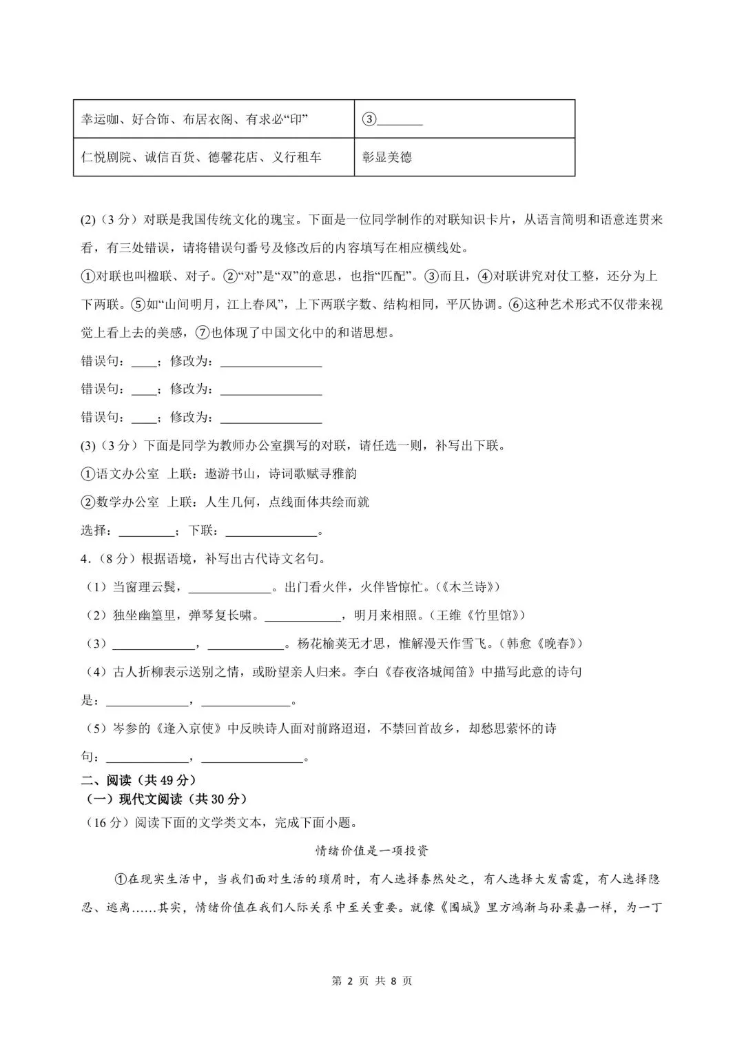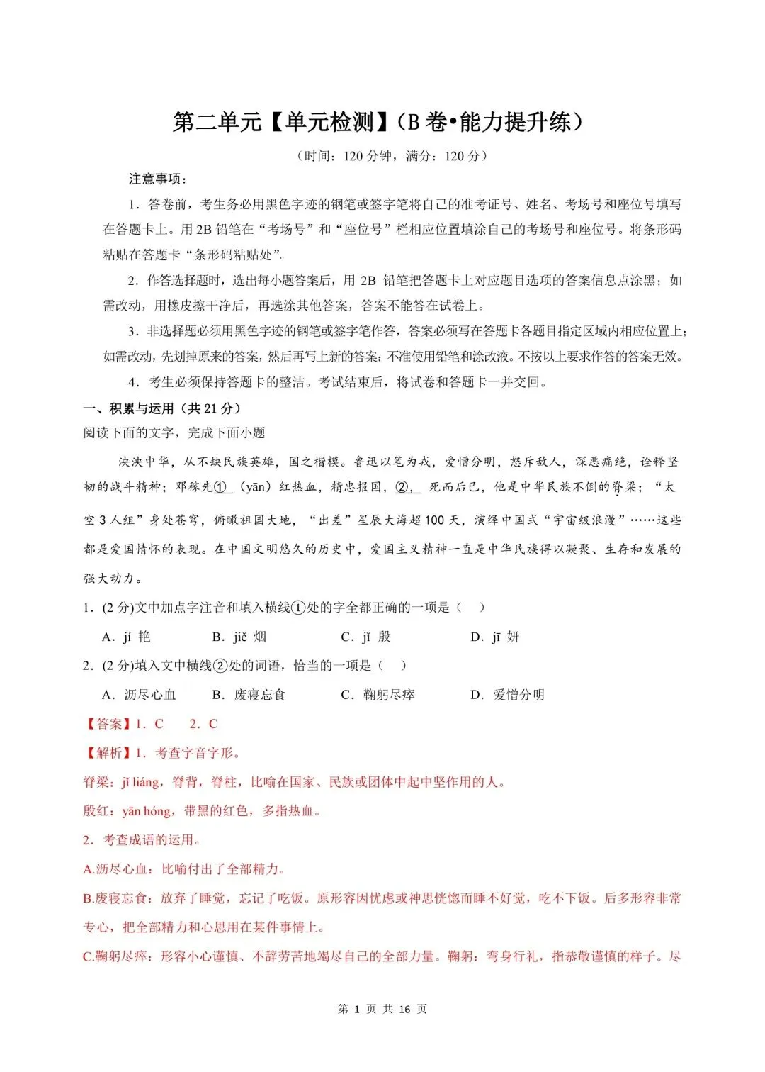 2026年春新版七年级下册人教部编版语文第二单元检测卷【能力提升练】含答案,电子版可打印