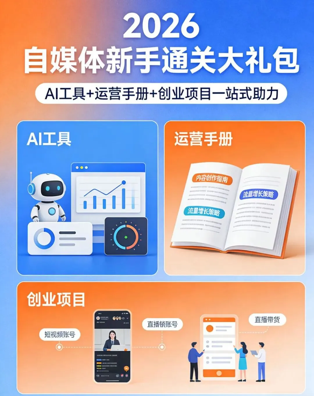 为了回馈各位粉丝,也帮更多自媒体新手少踩坑、少走弯路,我特意整理了《2026自媒体新手通关大礼包》,现在全部免费开放领取!
