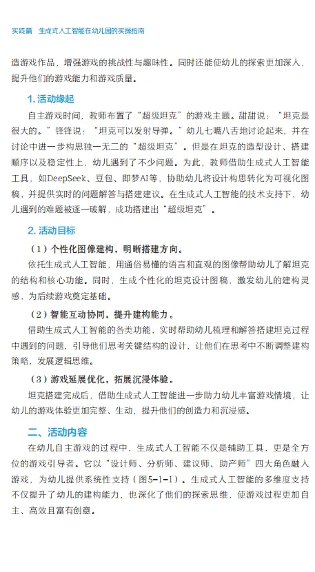 这本书的价值不仅在于“授人以鱼”,更在于“授人以渔”,引导教师思考如何将AI为我所用,教会教师如何操作具体的AI工具,使其真正服务于幼儿教育,以达成既定的教育目标,而不是被AI裹挟。