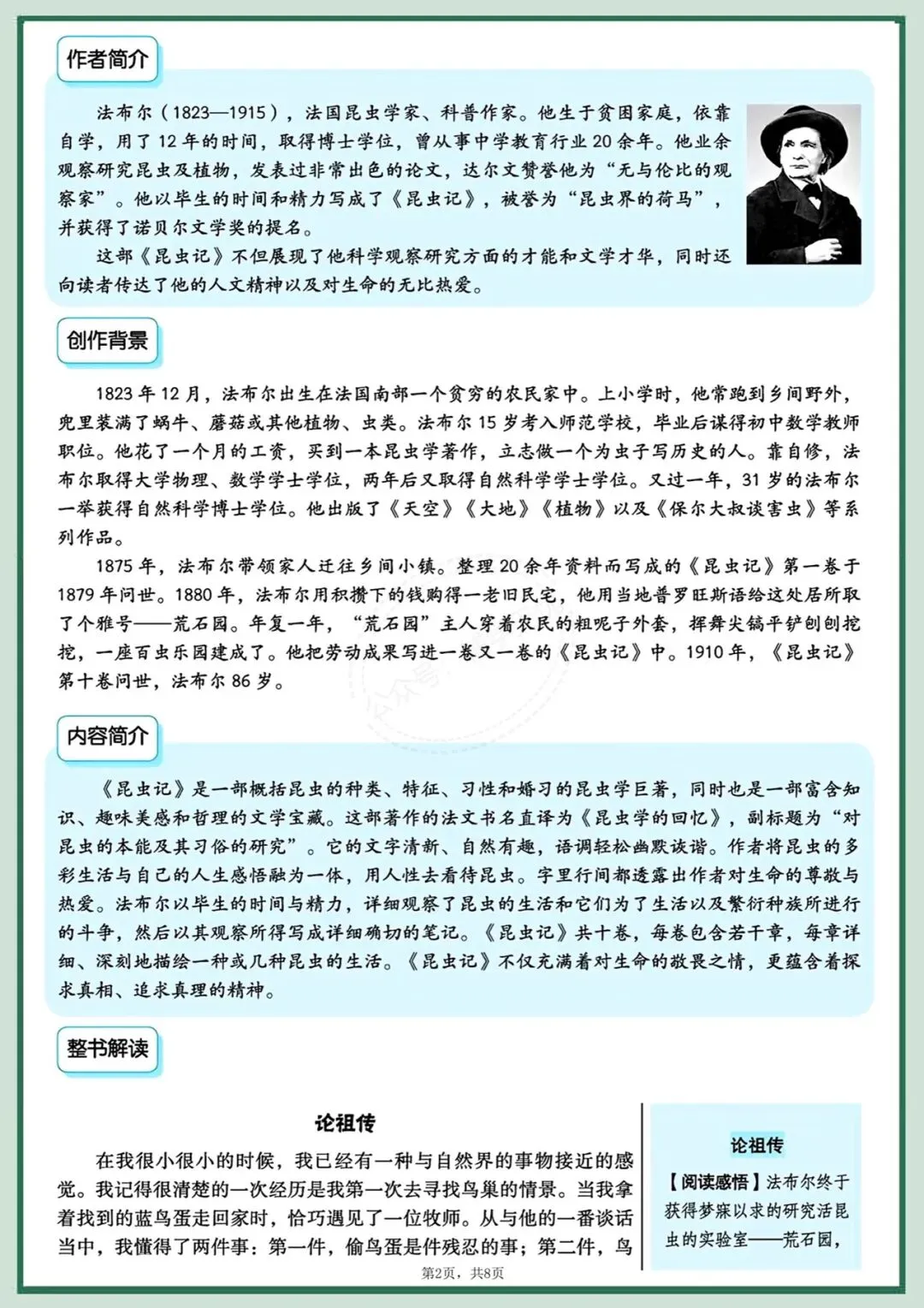 2026年春期最新版八年级下册语文必读名著《经典常谈》《昆虫记》导读,可以作为读书笔记使用!有完整电子版可打印!