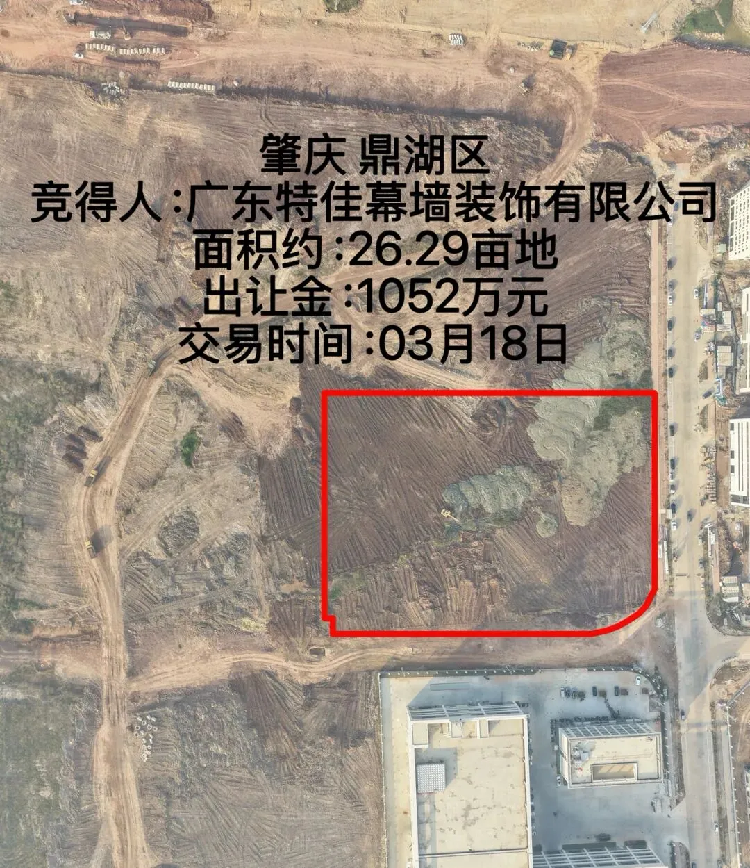 2026年03月18日,一宗位于肇庆鼎湖区,占地面积约26.29亩的国有工业用地成功让出。