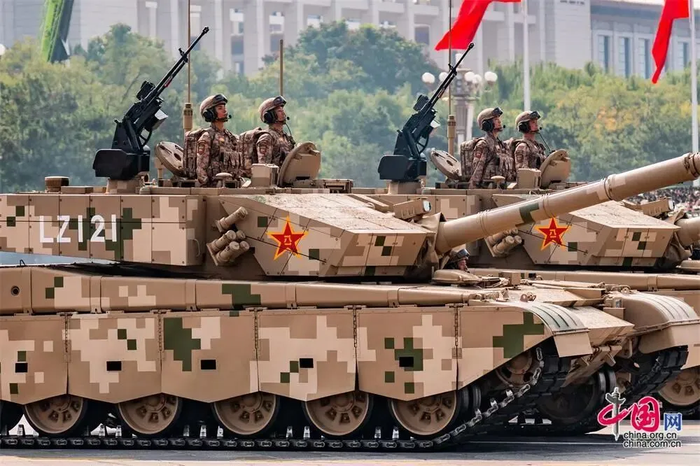 99B主战坦克(3)(图片来源:中国网《九三阅兵 高清大图看中国人民解放军英雄风采 装备方队接受检阅》http://photo.china.com.cn/2025-09/03/content_118059520.shtml)| 99B坦克升级了炮塔顶部防护和火控系统,采用了新一代的先进弹药,能有效击穿目前世界上所有现役主战坦克的正面装甲