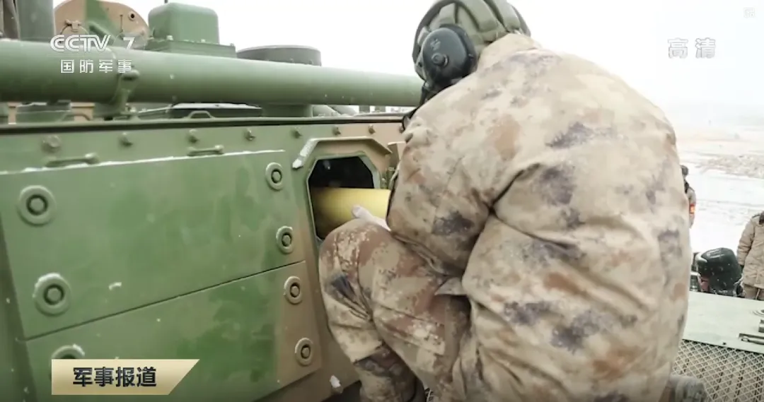 15式轻型坦克(4)(图片来源:[军事报道] 2021-2-9新春走军营 直击15式轻型坦克高原实弹射击训练 视频截图https://tv.cctv.com/2021/02/09/VIDEIoHSts8KAXFJoc37BAgM210209.shtml?spm=C53074552346.PLgREq4pd4yq.0.0)| 炮弹通过炮塔尾部的补弹口装入自动装弹机内,射击时自动装弹机再将炮弹推入炮闩内