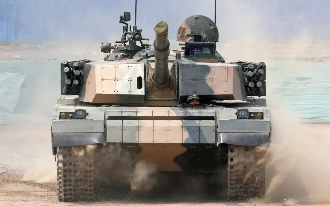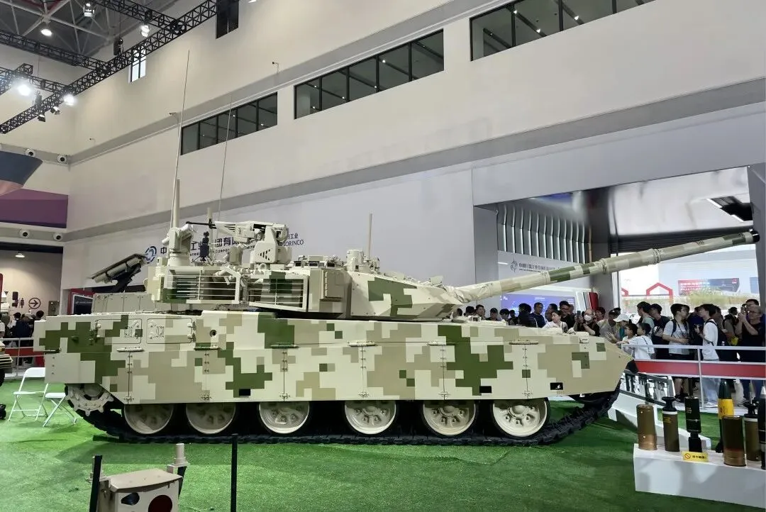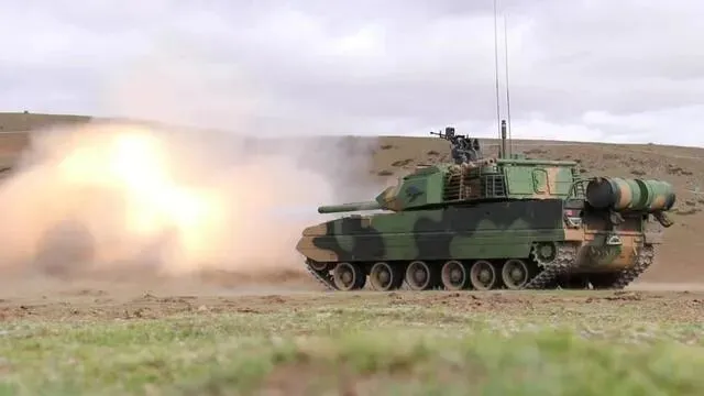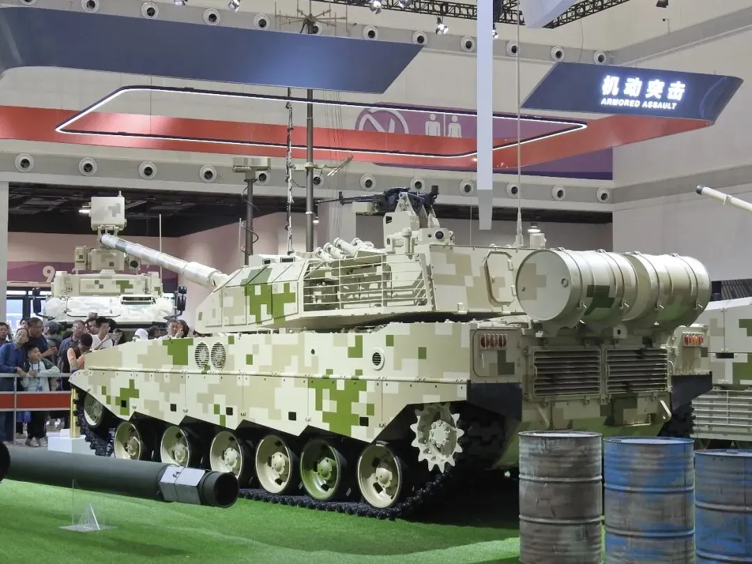 100式坦克(1)(图片来源:搜狐@冯志超《ZTZ-100式坦克首次亮相,有何亮点?代表中国未来陆战发展方向!》https://www.sohu.com/a/932411239_121623165)| 100式坦克采用无人炮塔,因此炮管上未见抽烟装置,高射机枪进化为完全自主射击的武器站
