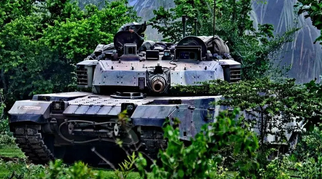 “终极”形态的VT-4(1)(图片来源:今日头条@钢铁保卫者《将生存能力和感知能力拉满!聊聊本届航展的重量级展品VT-4A1坦克》https://www.toutiao.com/article/7433325742898823743/)| 城市布局适合敌人隐藏和偷袭,坦克进入城市时,有必要加强侧翼装甲和态势感知能力。图中VT-4加装了城市套件以增强甲弹对抗能力,包括安装于车体两侧前半部的爆炸式反应装甲(覆盖到第四个负重轮位置)、覆盖动力系统侧面(后两个负重轮和诱导轮)的格栅装甲,以及安装于车体底部用来防御地雷和路边炸弹的附加装甲板等,加上珠海航展上VT-4所展现出的态势感知配置,城市作战必将如虎添翼