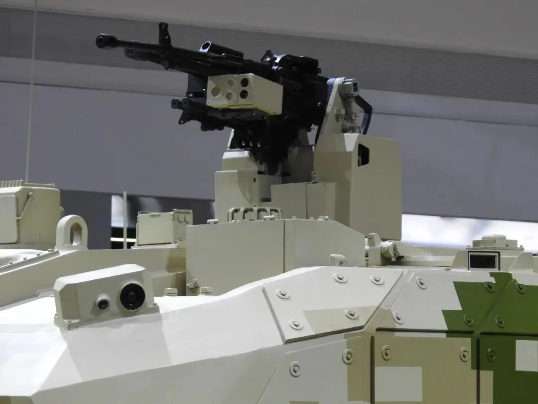 VT-5轻型坦克(4)(作者摄于2024年珠海航展)| VT-5武器遥控站和摄像头特写,其中武器遥控站搭载双联12.7mm高平两用机枪 + 40mm自动榴弹发射器,强化反步兵与面目标压制能力,尤其适合城市巷战与丛林作战;炮塔四周有4个双镜头摄像头,此外车首上装甲还有3个镜头,车尾有1个镜头,这样配置是为了便于VT-5切换为无人驾驶模式,采用无人驾驶后,在通过一些危险地区时,人员可以离开车辆,以远程操控的方式,操作坦克行动