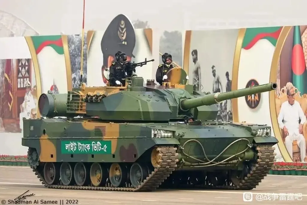 孟加拉国装备的VT-5坦克(图片来源:百度贴吧@战争雷霆吧《新联队载具孟加拉VT-5会有液气悬挂吗?》https://tieba.baidu.com/p/9547884614)| 孟加拉国地形水网稻田密布,VT-5能较好适应当地的地理环境