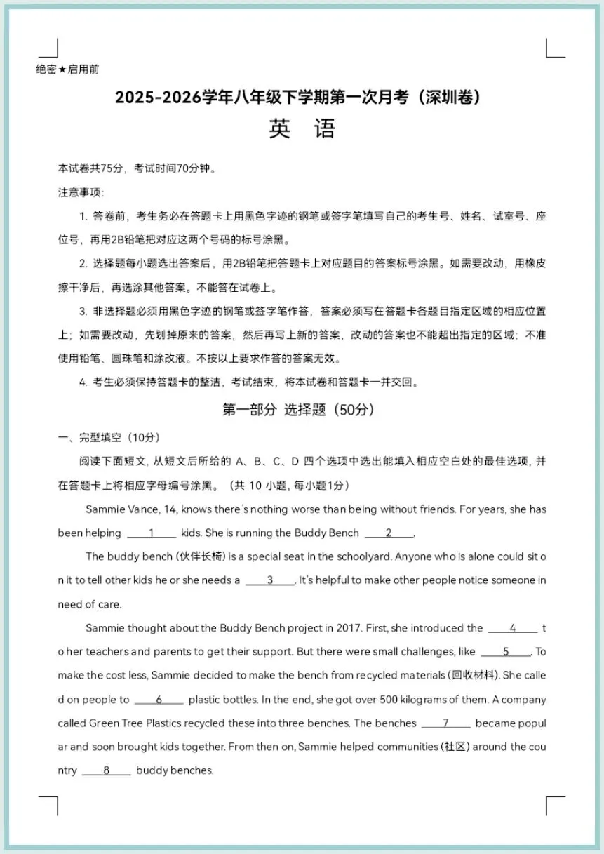 2026春(沪教牛津版)八年级下册英语《第一次月考检测卷(深圳卷)》(原卷+解析版),可打印!