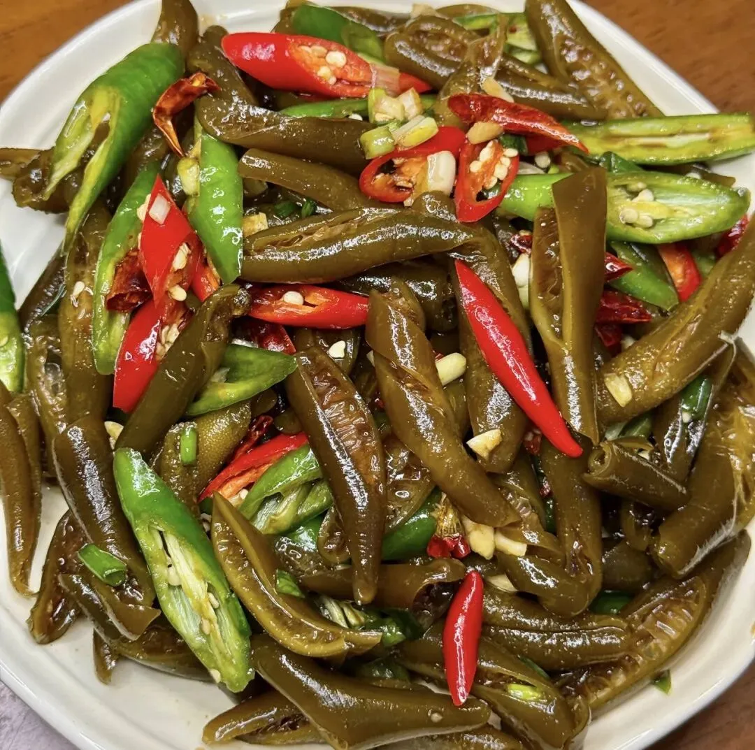 干海笋、线椒、小米辣、葱、蒜、干辣椒