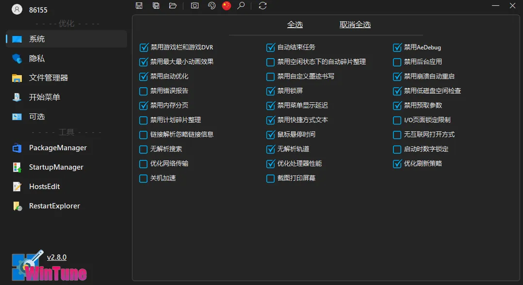 WinTunev2.8.0 中文绿色版:Win10/11 系统终极优化神器,一键清理加速、修复错误,让电脑重获新生!