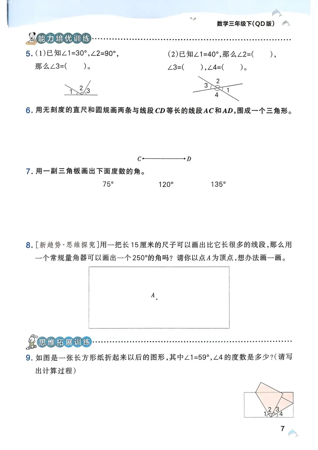 《青岛54版》三年级下册数学一课一练,含答案共116页,完整电子版可打印