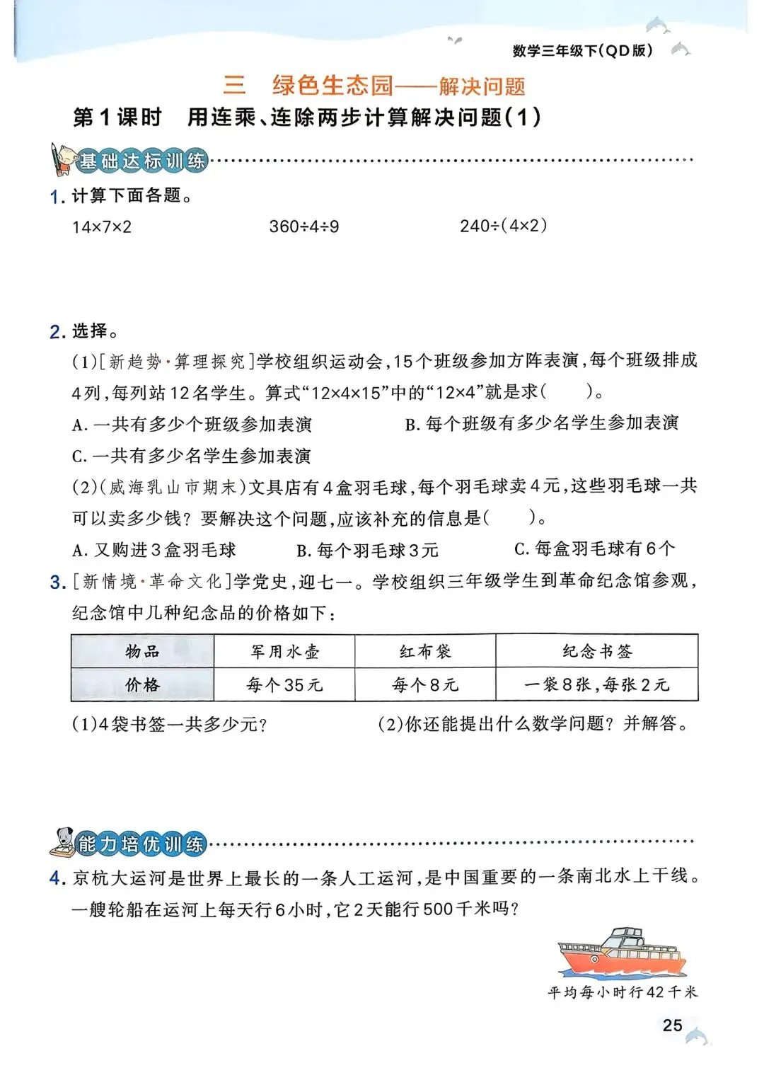 【26春《青岛54版》三年级下册数学一课一练,含答案共116页,完整电子版可打印让孩子练一练吧!欢迎分享到班级群或朋友圈,方便家长打印出来助力孩子高效学习!