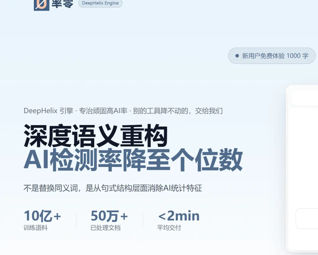 有。率零,2元/千字。3万字硕士论文总共60元——还不到很多工具处理一万字的价格。先用率零的1000字免费额度测一段,看看效果再决定。