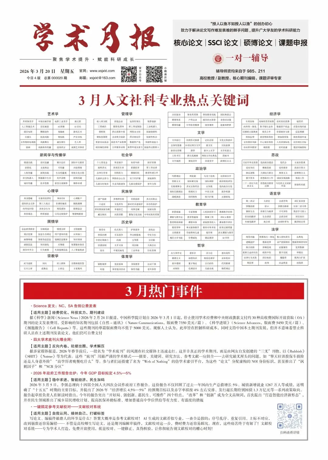 【三月学术月报】📚 三月人文社科热点关键词本月,人文社科领域风起云涌,各专业关键词各有不同。(详情可见报内信息)