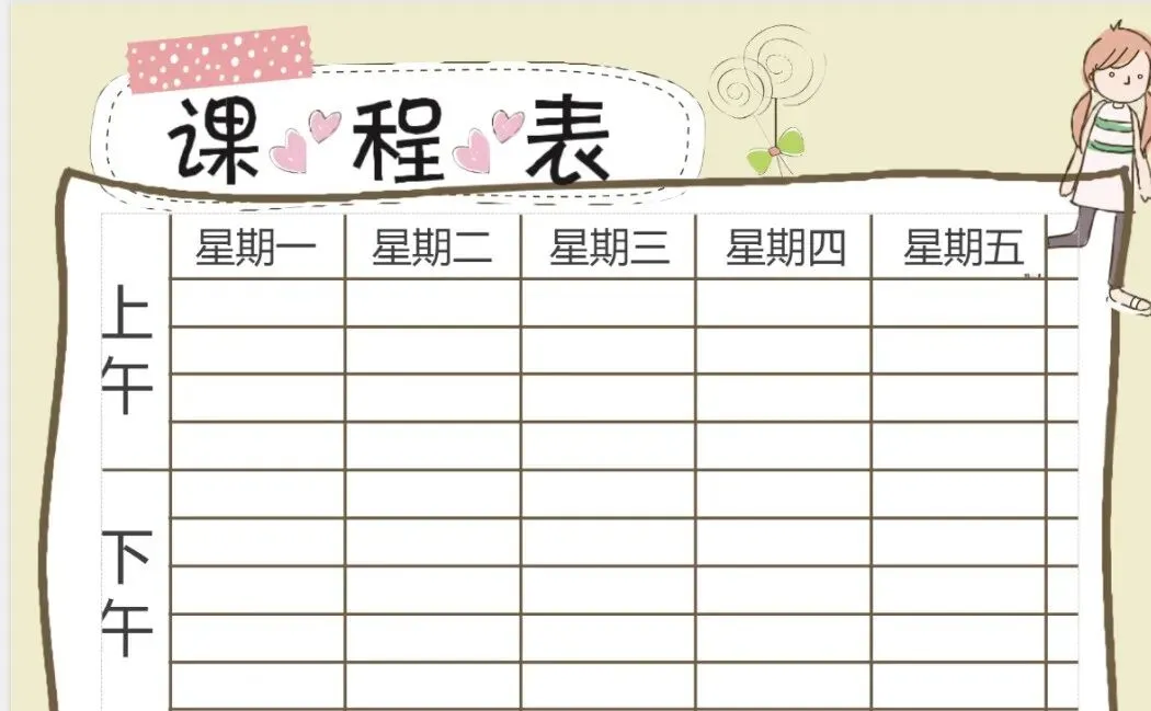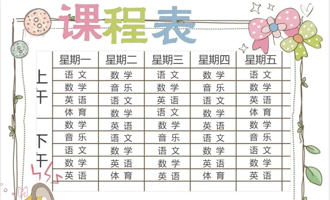 可爱课程表模板(电子版可编辑可打印)【免费保存下载】