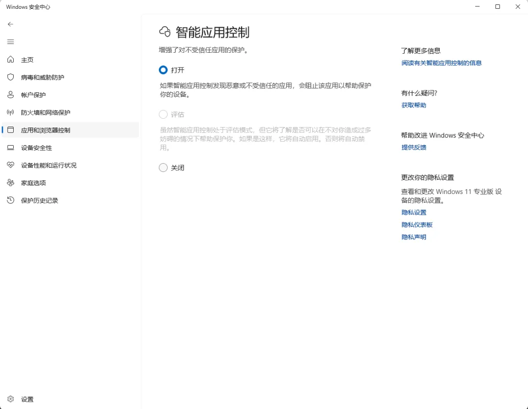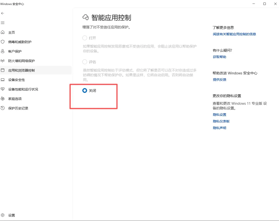 方案一:关闭智能应用控制(推荐 99% 的人这么做)