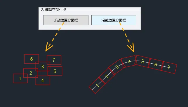 点击一键生成视口,视口排序根据黄色字体序号1、2、3…可以手动更改数字,自动生成的视口在布局FTBJ内。
