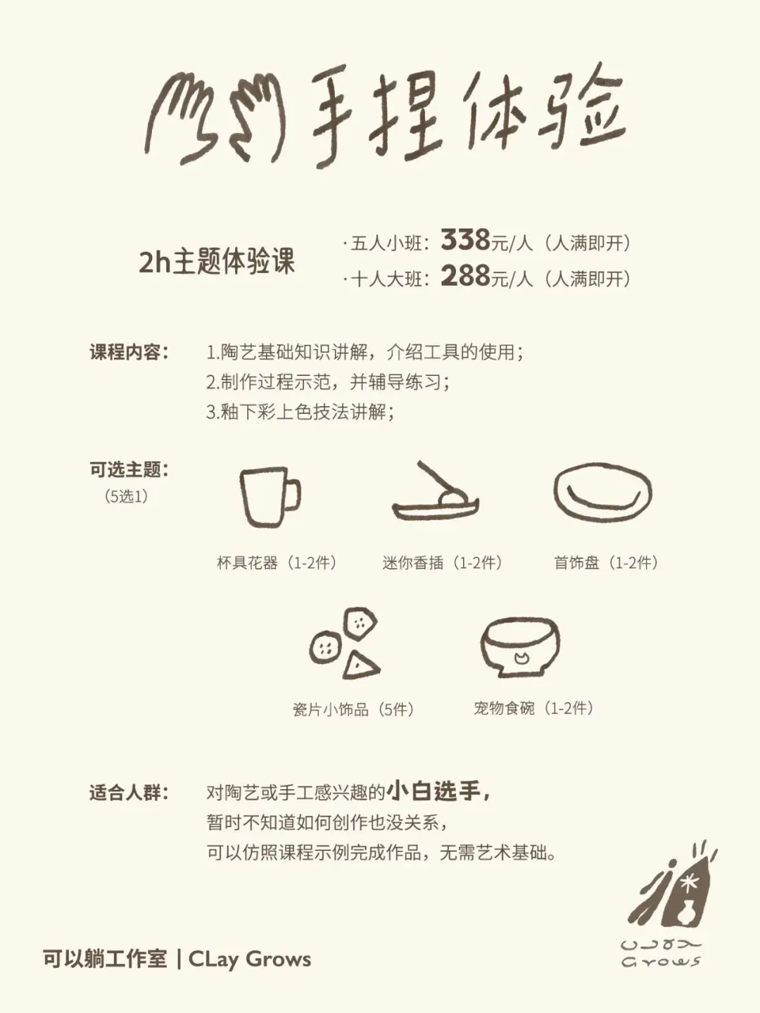 希望下班拥有心流时光的打工人,零基础学员、咖啡/饮品爱好者,想从最实用的小器物开始陶艺之旅的人。