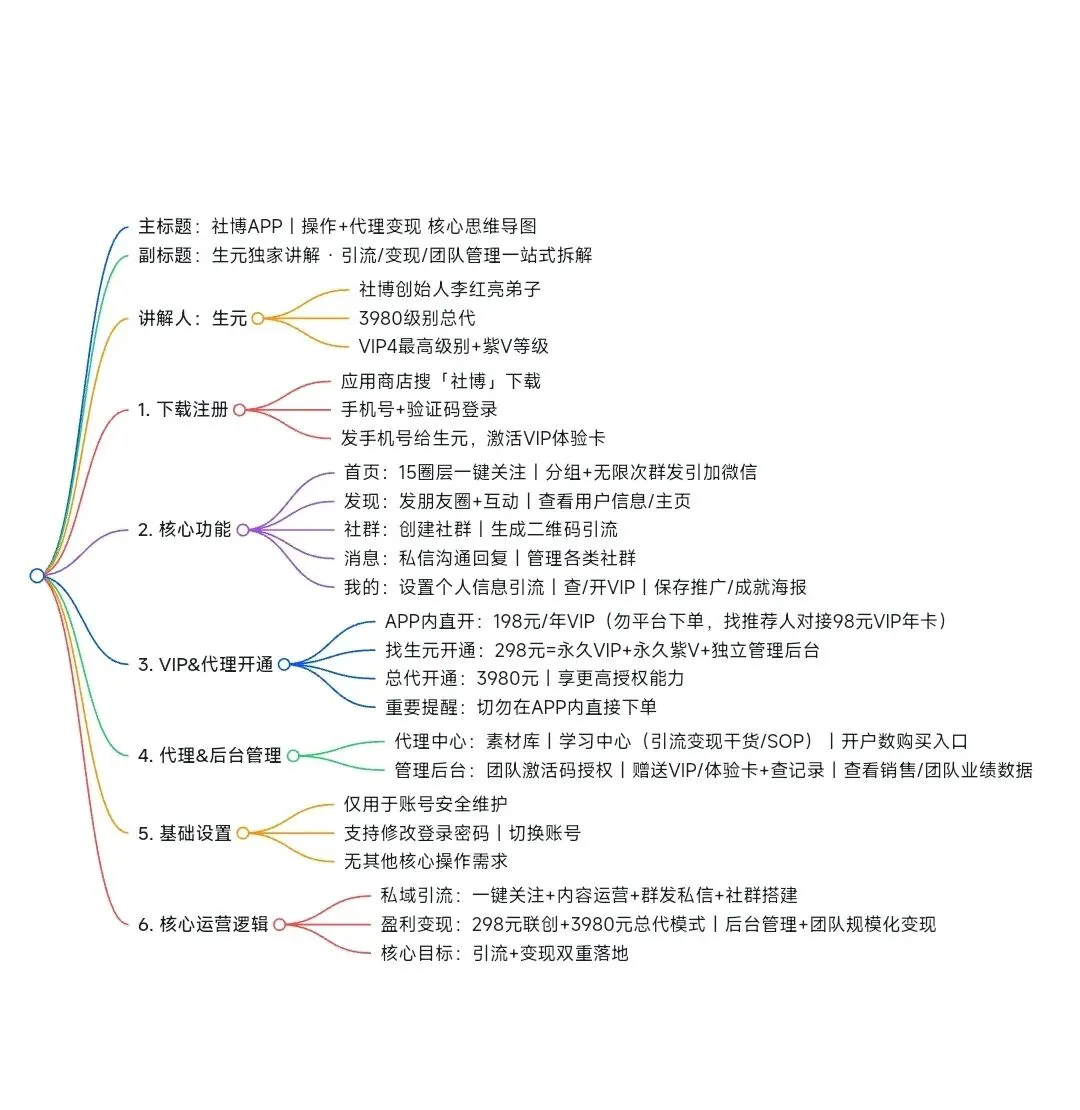 主标题:社博APP|操作+代理变现 核心思维导图