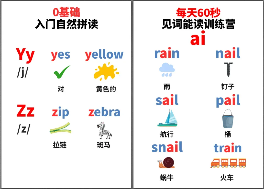 免费资源 | 超实用!每天60秒,21天学会自然拼读!一整套自然拼读规则!(可打印)