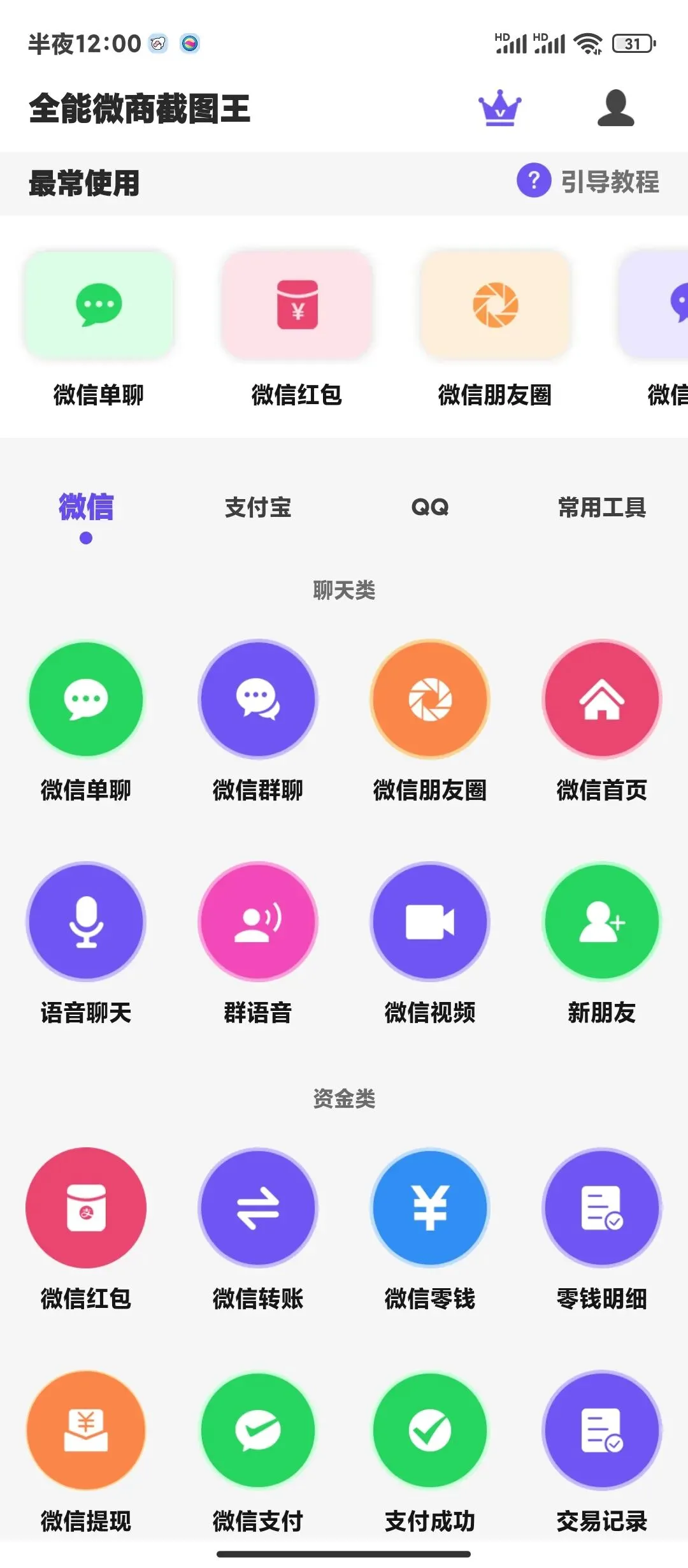 多平台界面模拟:可精准模拟微信、支付宝、QQ 等常用社交与支付平台的界面,涵盖聊天界面、朋友圈发布页面、账户余额显示页、转账详情页以及交易记录页面等,让用户能随心定制符合各平台风格的截图内容。