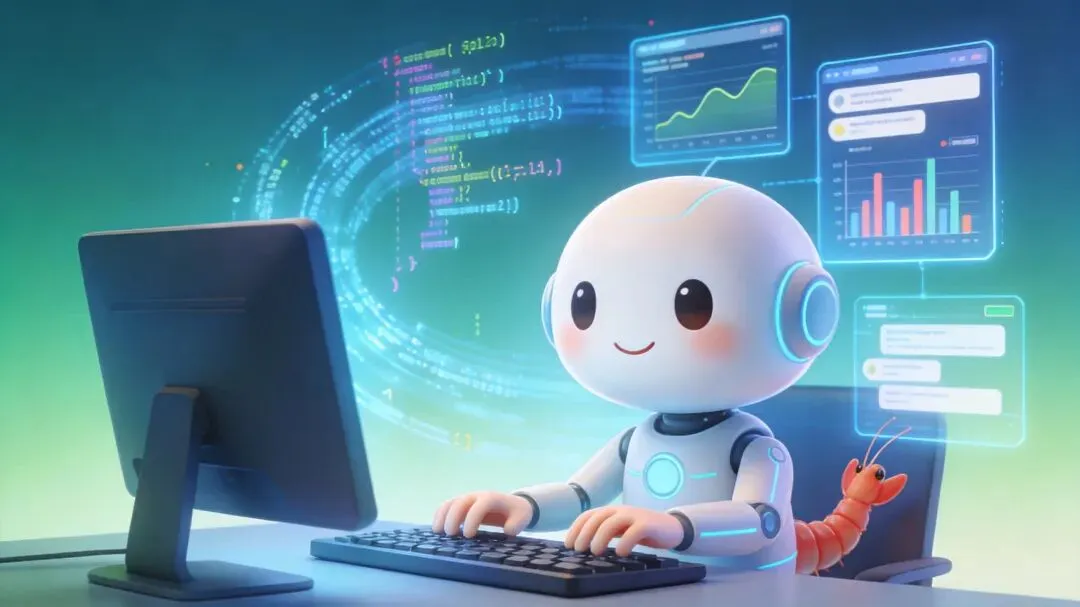 图片提示词:”一只友好的小虾米AI助手正在操作电脑,背后有各种代码和界面,充满科技感与亲切感,数字化风格,8K高清画质”