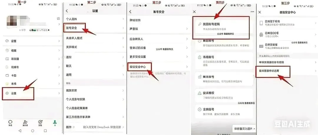 · 还可以在微信中依次点击「我」→「设置」→「账号安全」→「微信安全中心」,选择「找回账号密码」功能,输入手机号码和回执编号即可了解当前状态。