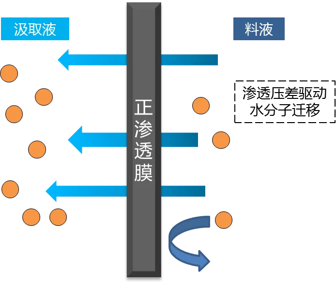 技术优势: 自发过程、膜污染倾向低、浓缩极限潜力大。