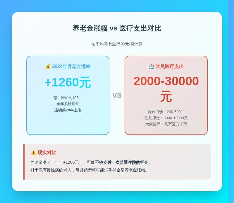 清晨5点,北京某三甲医院挂号大厅外,72岁的张大爷裹着厚厚的棉衣,在刺骨的寒风中已经排了快1小时队。他的口袋里,揣着刚收到的2024年养老金上涨通知,可脸上却没有一丝喜色。