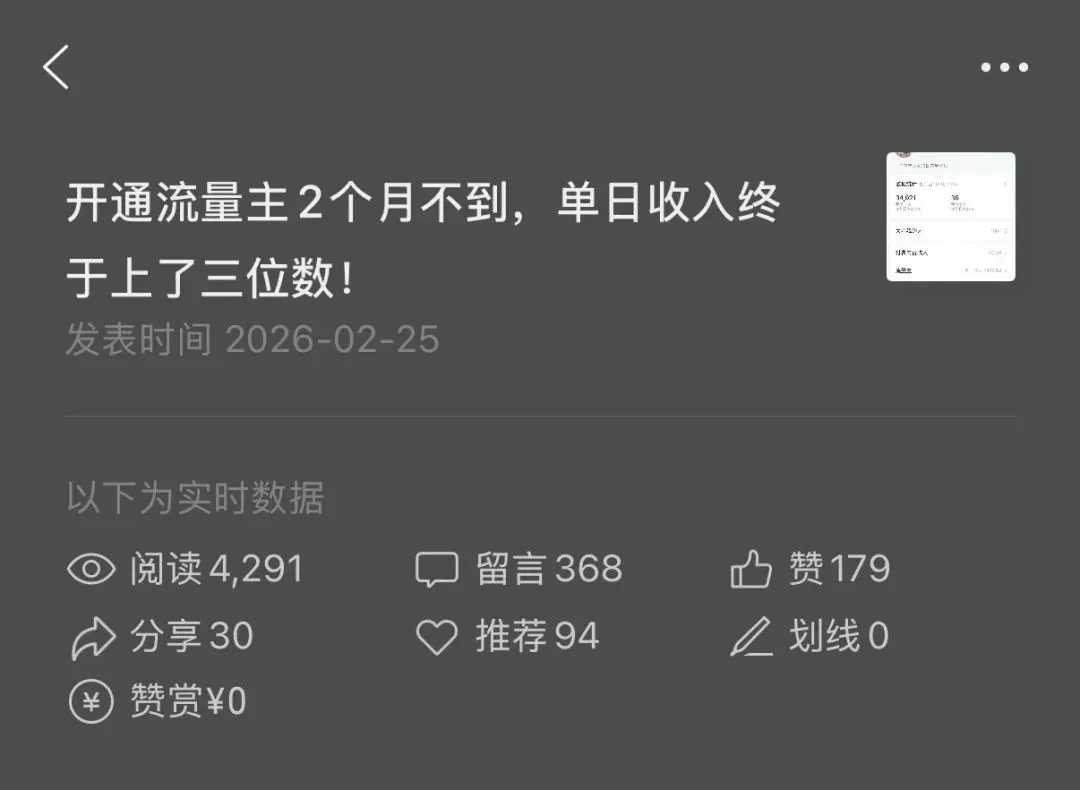 1月5号注册,7号开始发文,1月9号开通流量主。