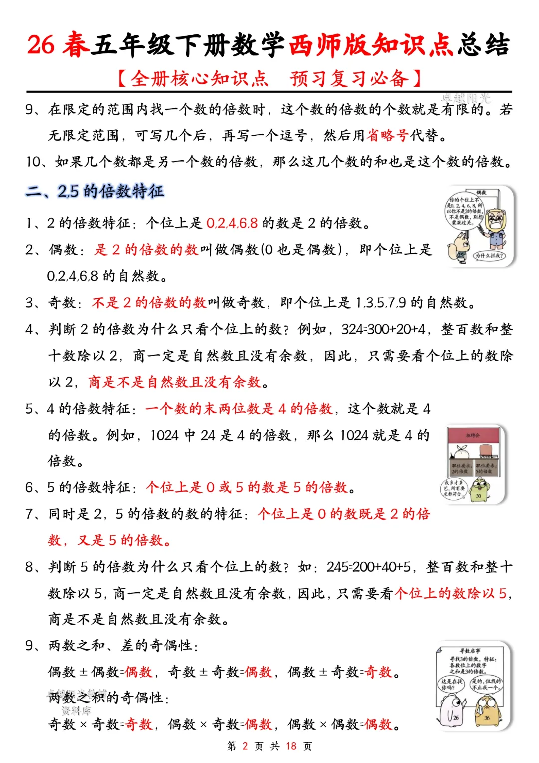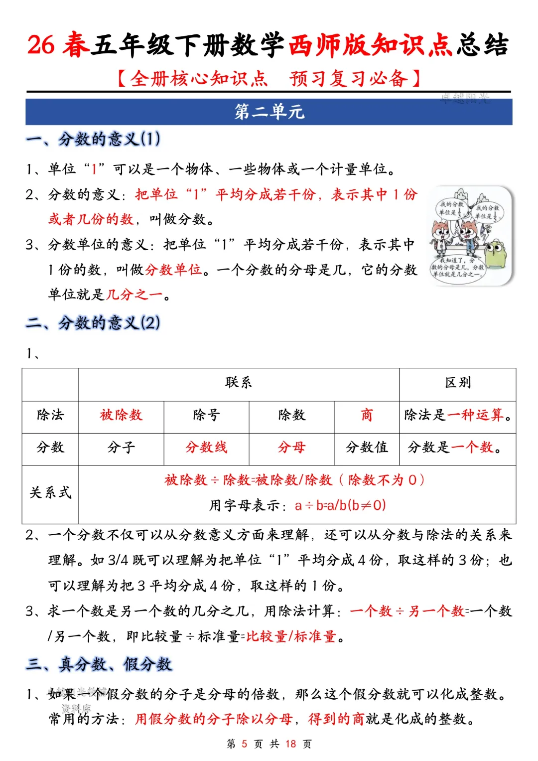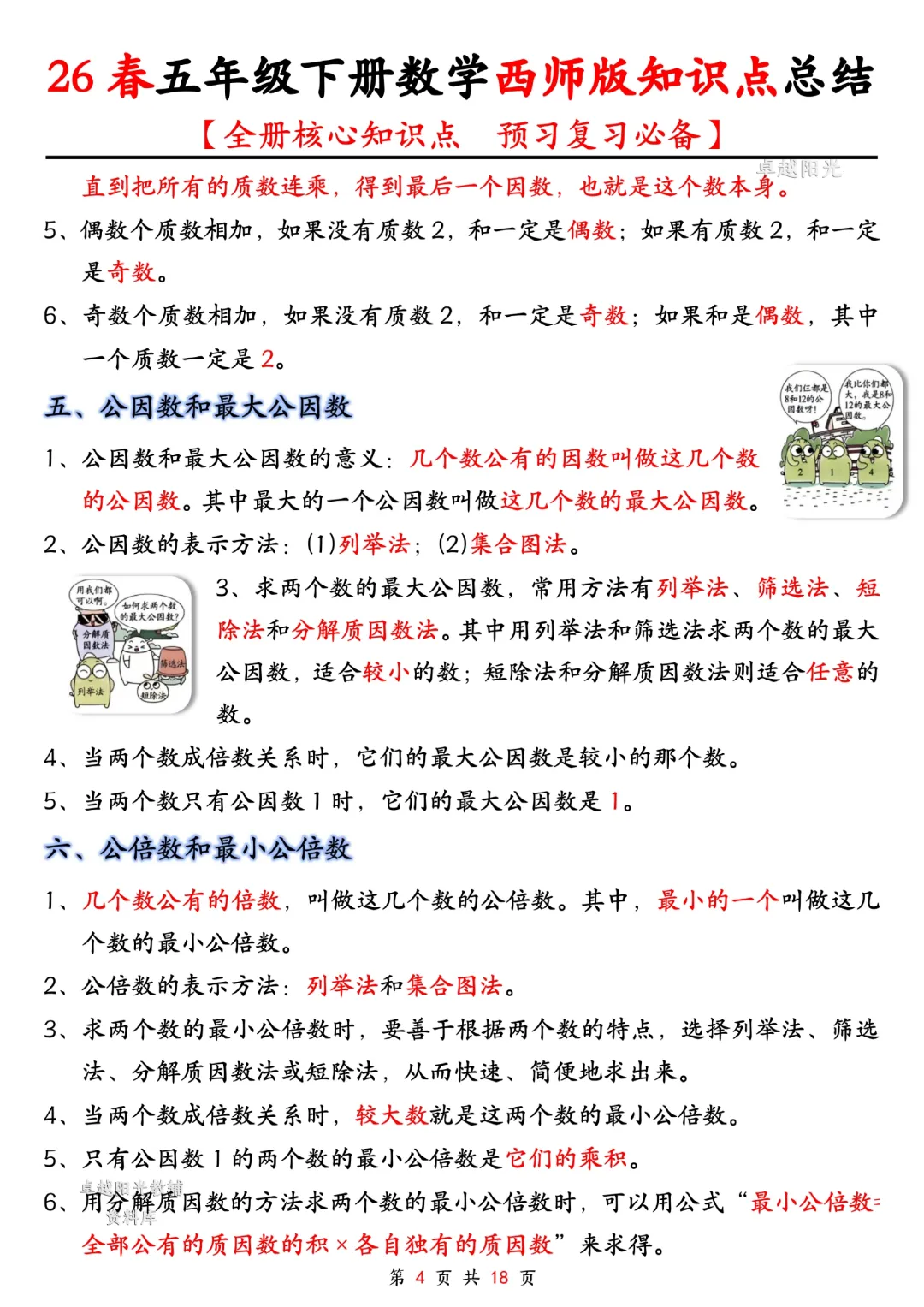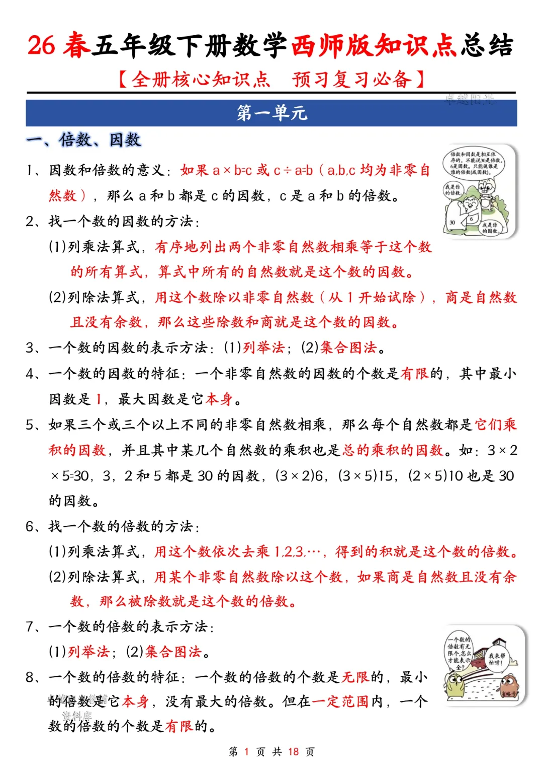今天给大家分享的是:五年级下册数学【西师版】【全册核心知识点总结,预习复习必背】丨完整高清电子版可打印