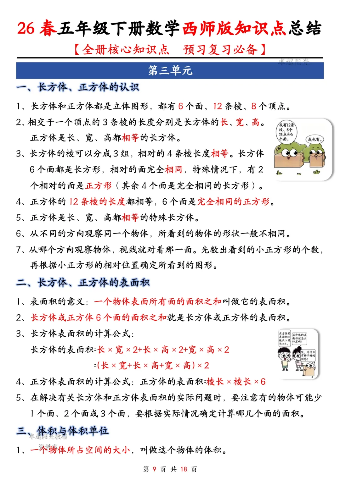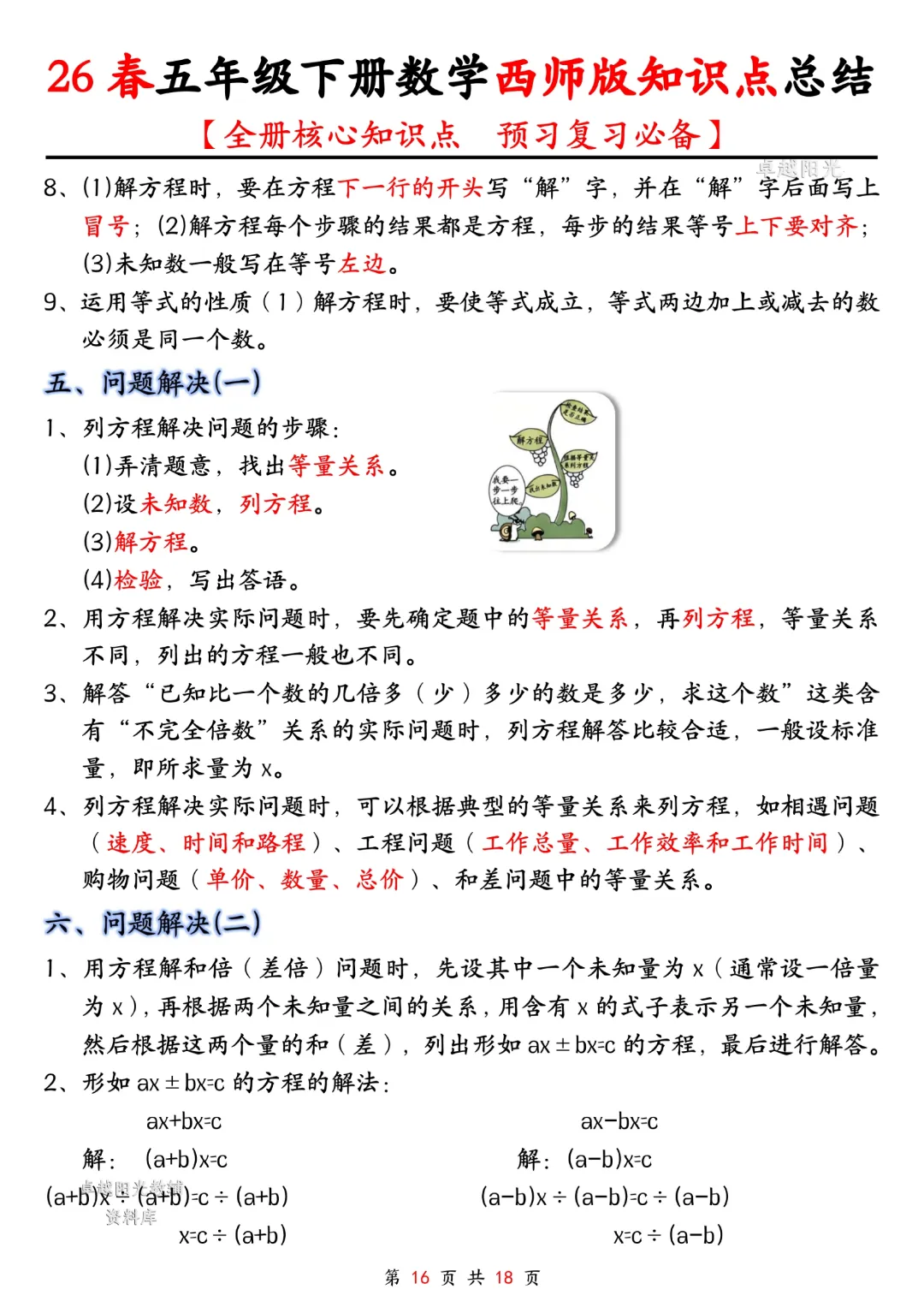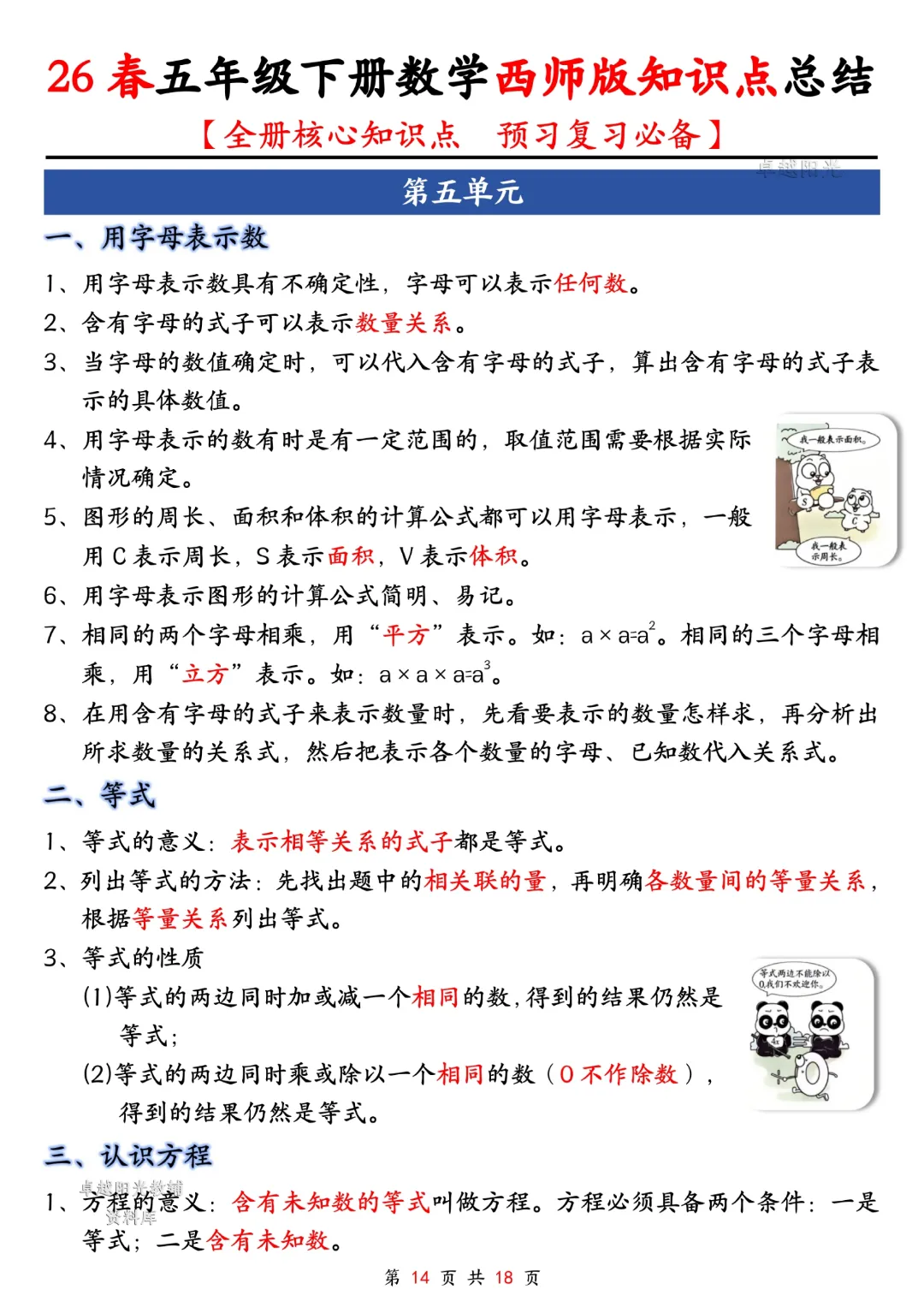 今天给大家分享的是:五年级下册数学【西师版】【全册核心知识点总结,预习复习必背】丨完整高清电子版可打印