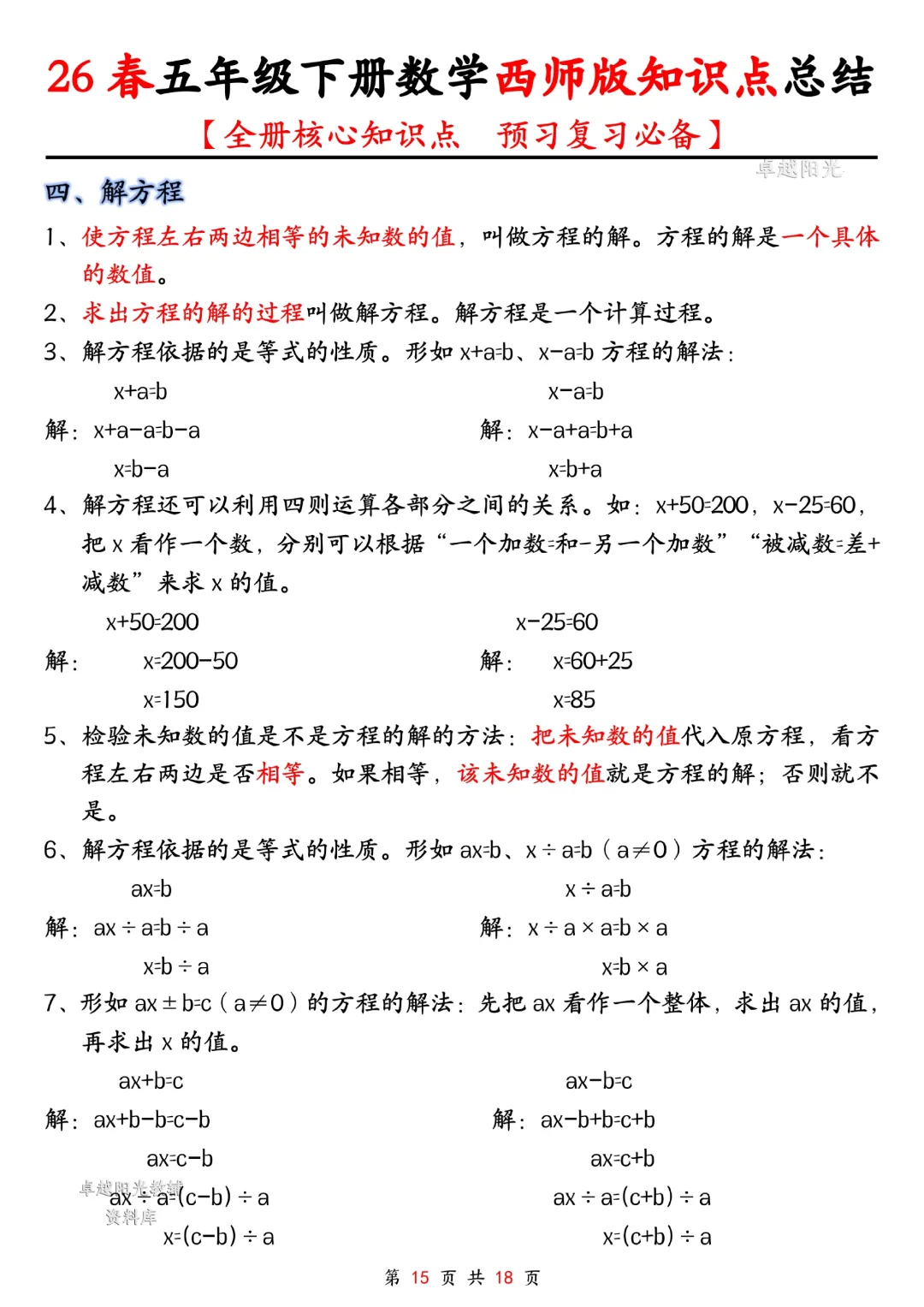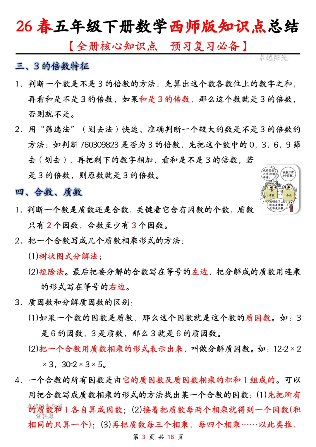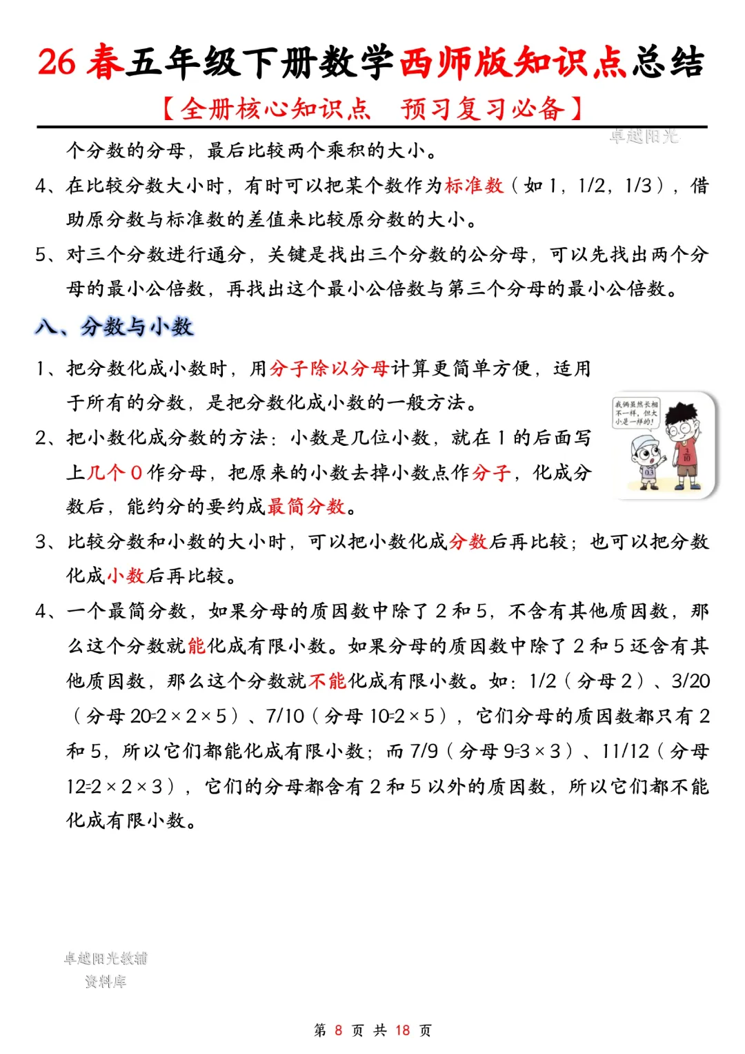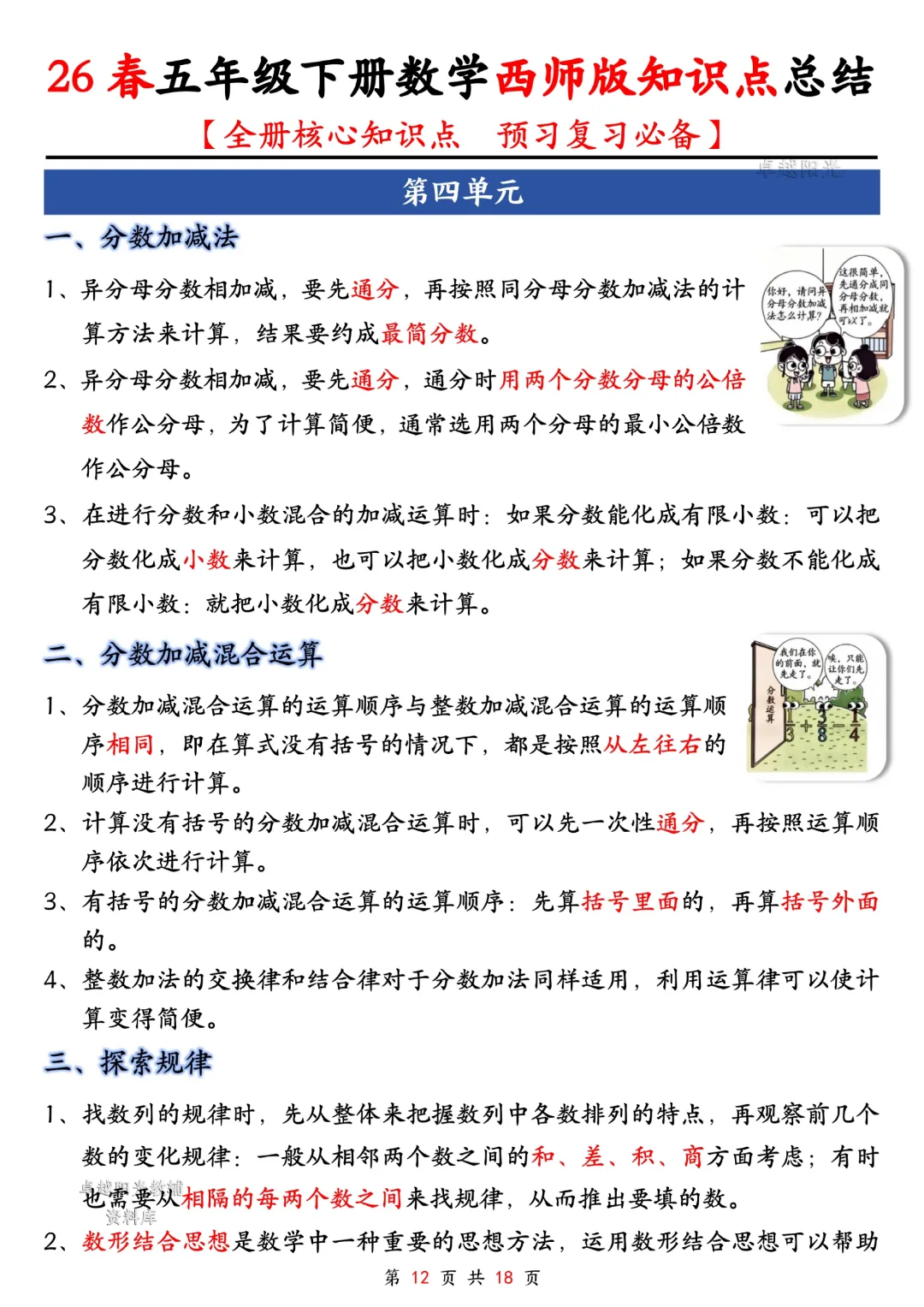 今天给大家分享的是:五年级下册数学【西师版】【全册核心知识点总结,预习复习必背】丨完整高清电子版可打印