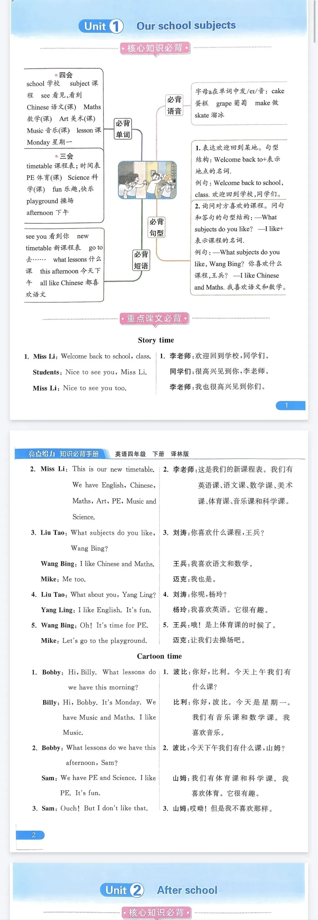 亮点给力提优课时作业本必背知识手册-译林版英语3-4年级下册,可打印