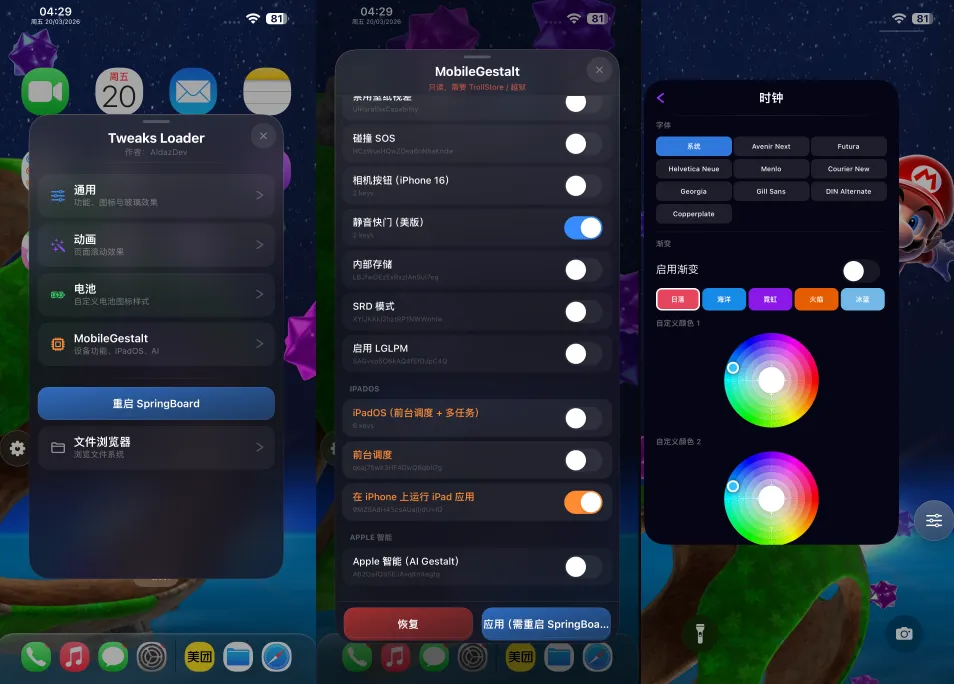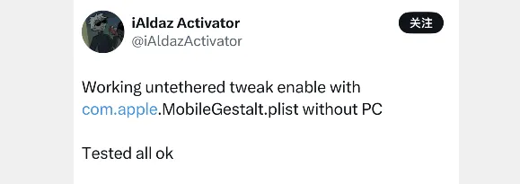 这款 TweaksLoader 插件是适配 Coruna 越狱,其他越狱不兼容。