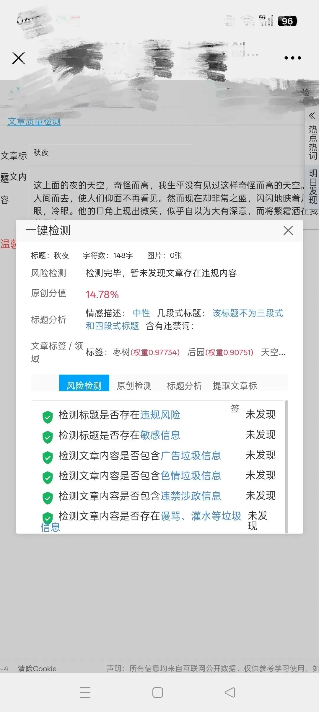 几秒后,屏幕弹出结果:原创分值:14.78%。