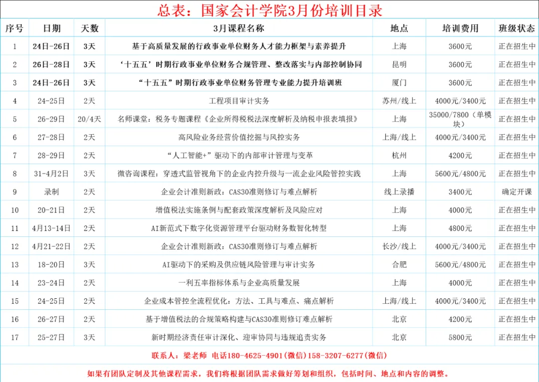 1.培训时间地点:3月24日-25日,上海国家会计学院/线上