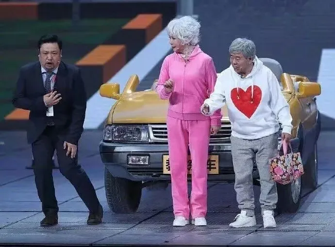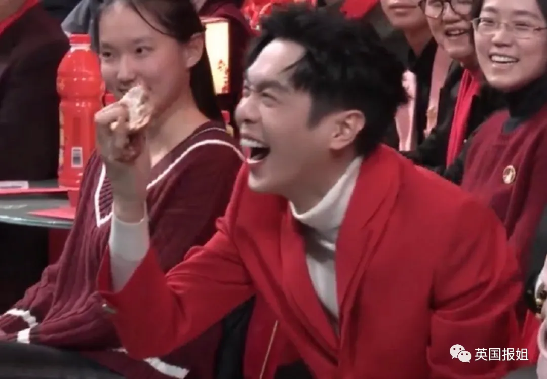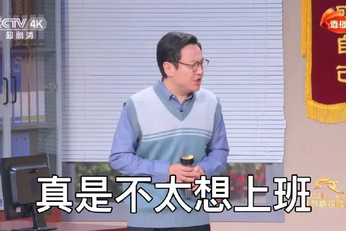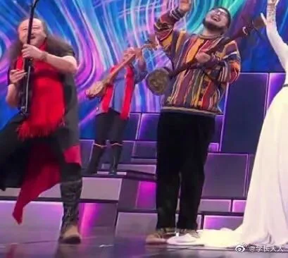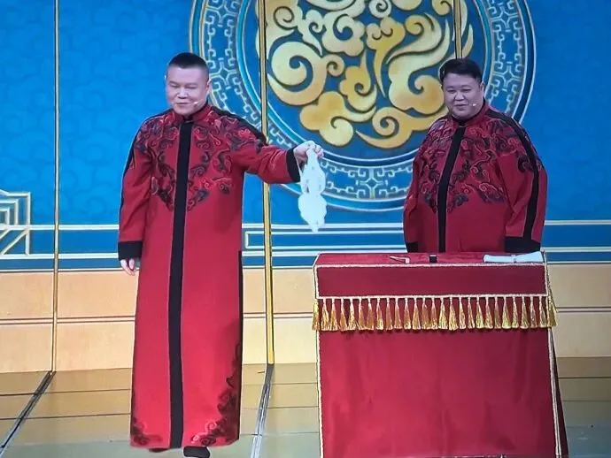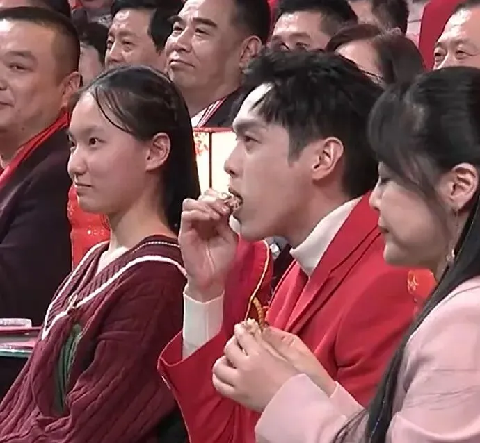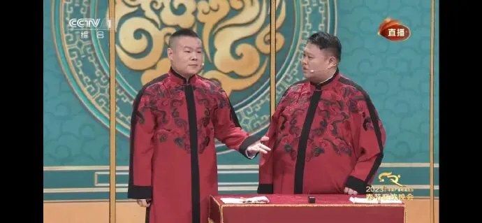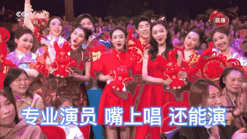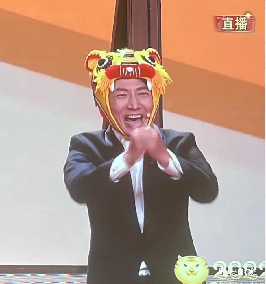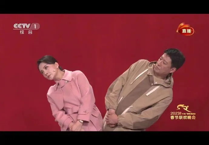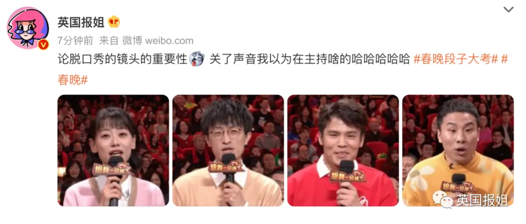 没想到春晚把脱口秀演员也请来了,就是这镜头给的,关了声音,以为春晚换了一批主持人呢:
