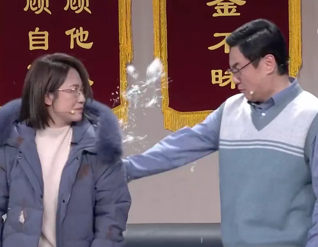 沈腾这一掌挺重啊,直接把马丽的羽绒服打开屏了: