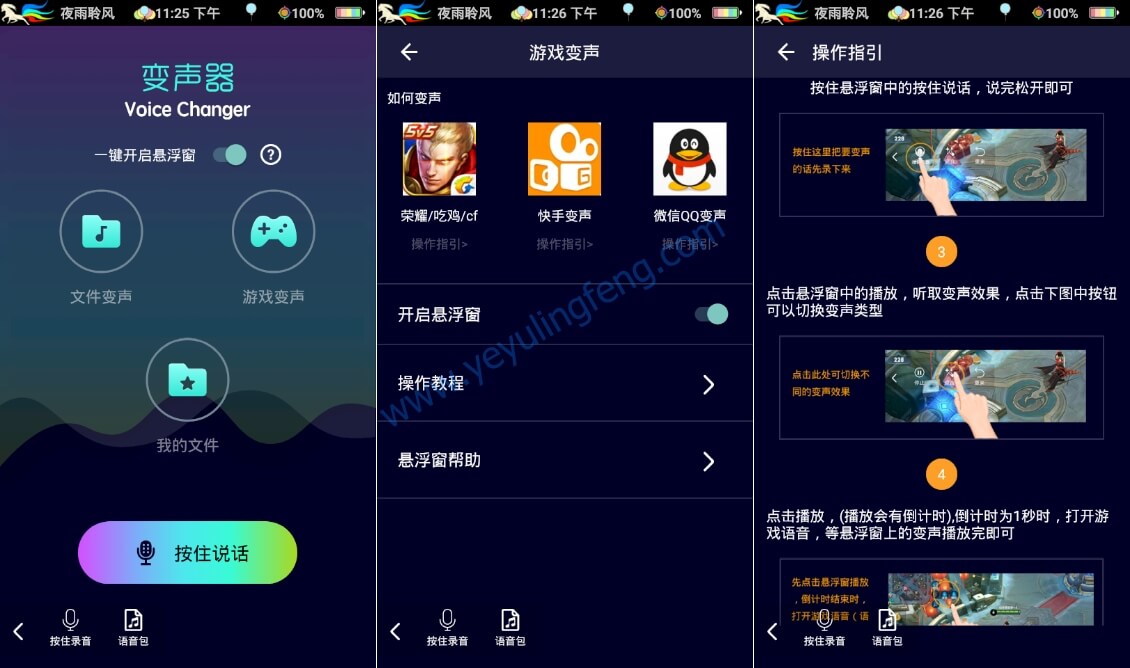点击播放,(播放会有倒计时),倒计时为1秒时,按住应用内的说话键,等悬浮窗上的变声播放完即可