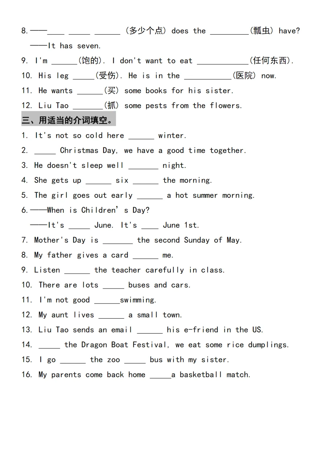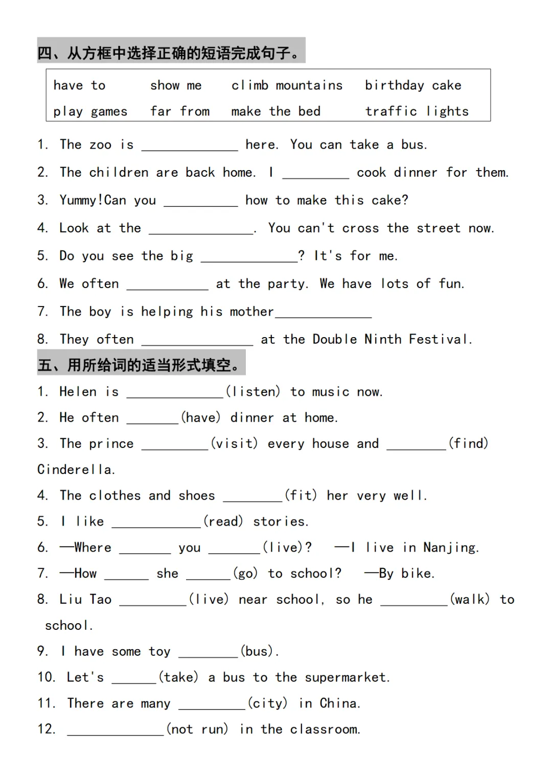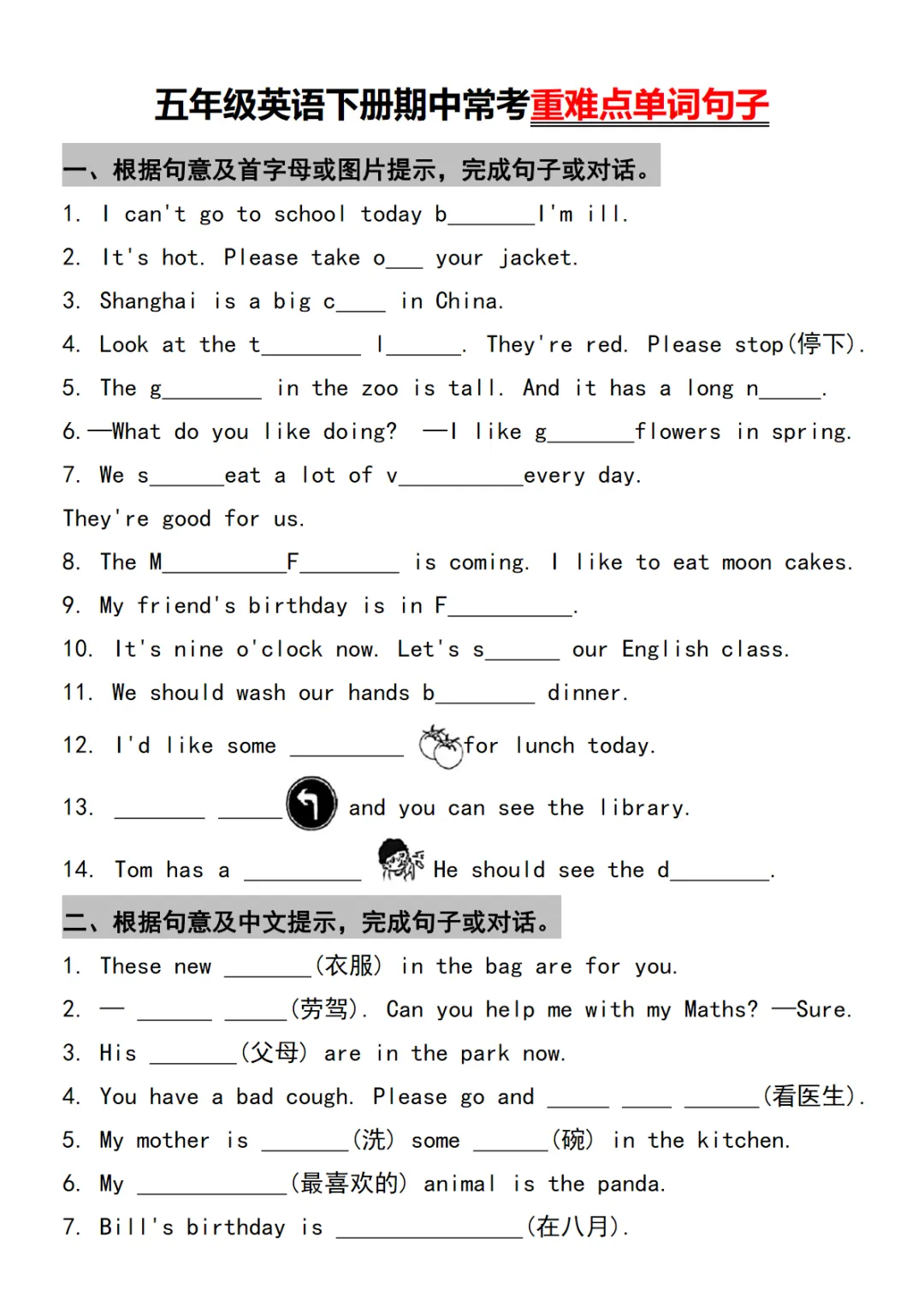五年级下英语重难点单词句子常考
