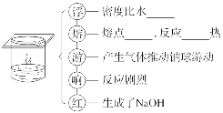 钠熔化成闪亮的小球,在液面上四处游动,发出“嘶嘶”的响声,反应后溶液变蓝 |