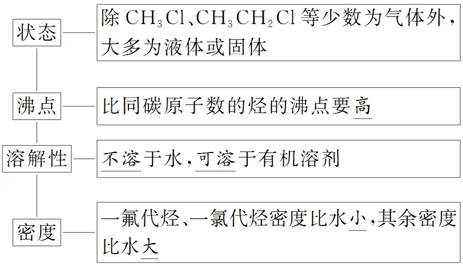 (1)卤代烃:烃分子里的氢原子被卤素原子取代后生成的化合物。通式可表示为R—X(其中R—表示烃基)。