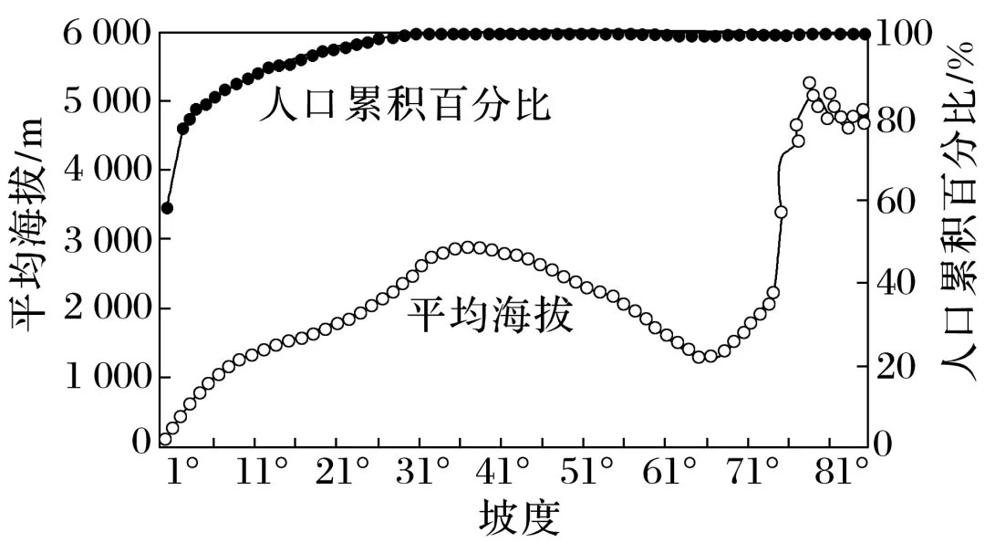 读“澜沧江—湄公河流域坡度与海拔、人口累积百分比曲线图”,完成11~12题。