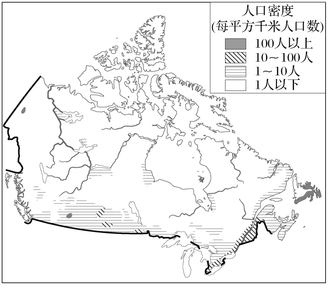 (2024·江苏淮安期中)人口分布与其所处的自然地理环境密切相关。读“加拿大人口分布图”,完成3~4题。