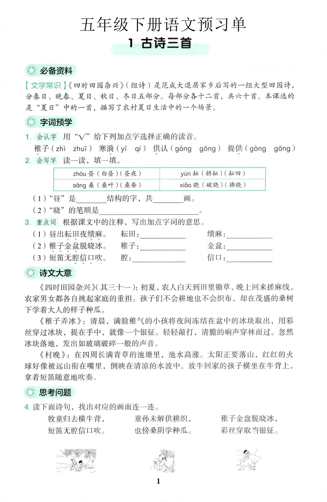 26春五年级下册全册语文预习单|完整电子版可打印!