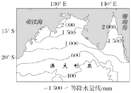 (2)澳大利亚西北部南北方向植被分异更多表现为水分差异而非热量差异,对此作出合理解释。